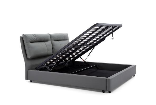 掀床式床架結合了現代家居的實用性與創新性,床架底部空間可用於收納,能為小空間帶來更多的儲物可能。