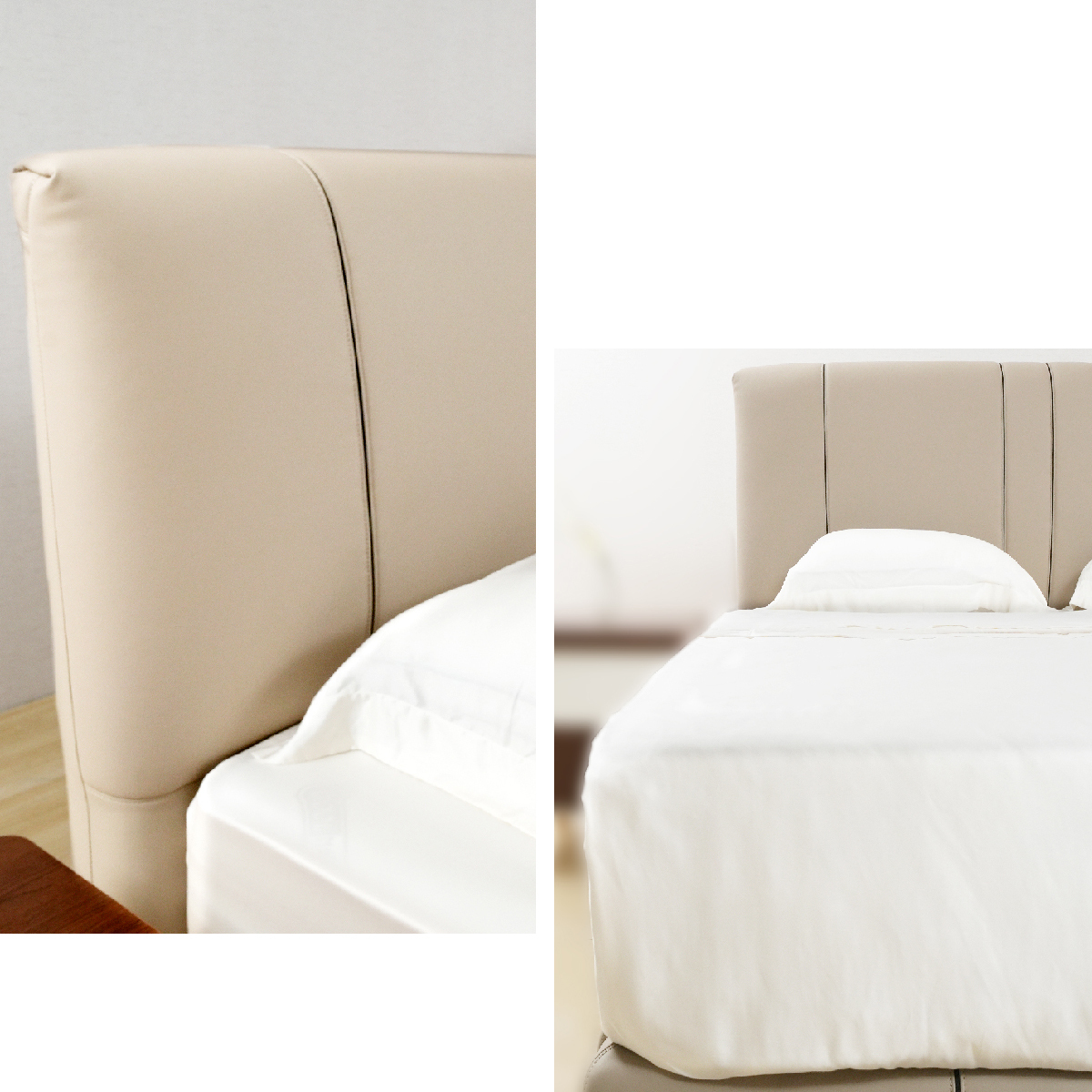 床頭板的極簡設計,採用不同密度的聚氨酯泡沫