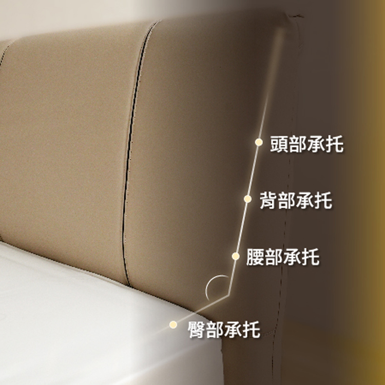 根據人體工學靠背設計,床架線條流暢