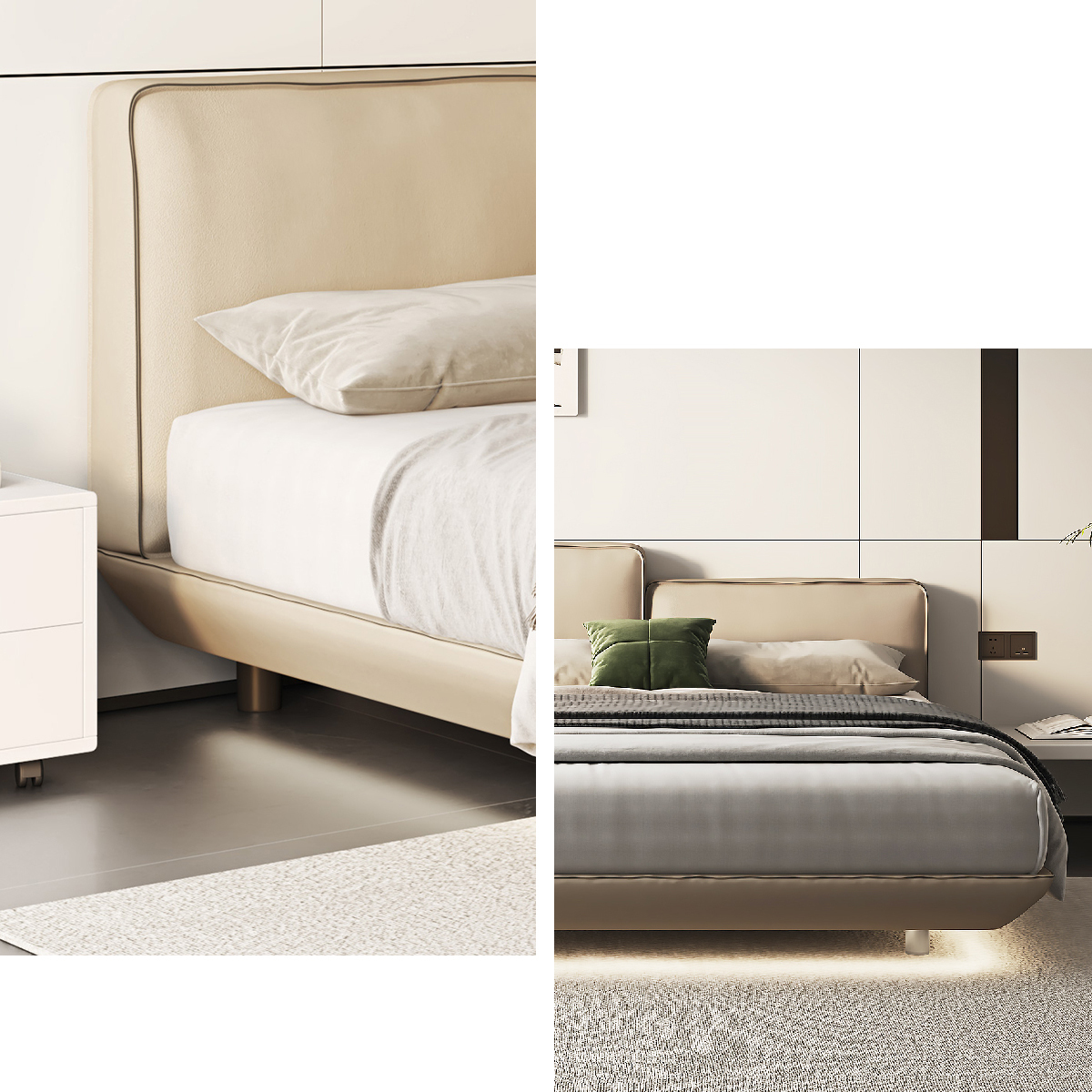 階梯感床頭設計搭配晶瑩水晶腳