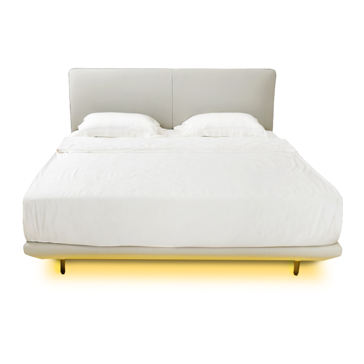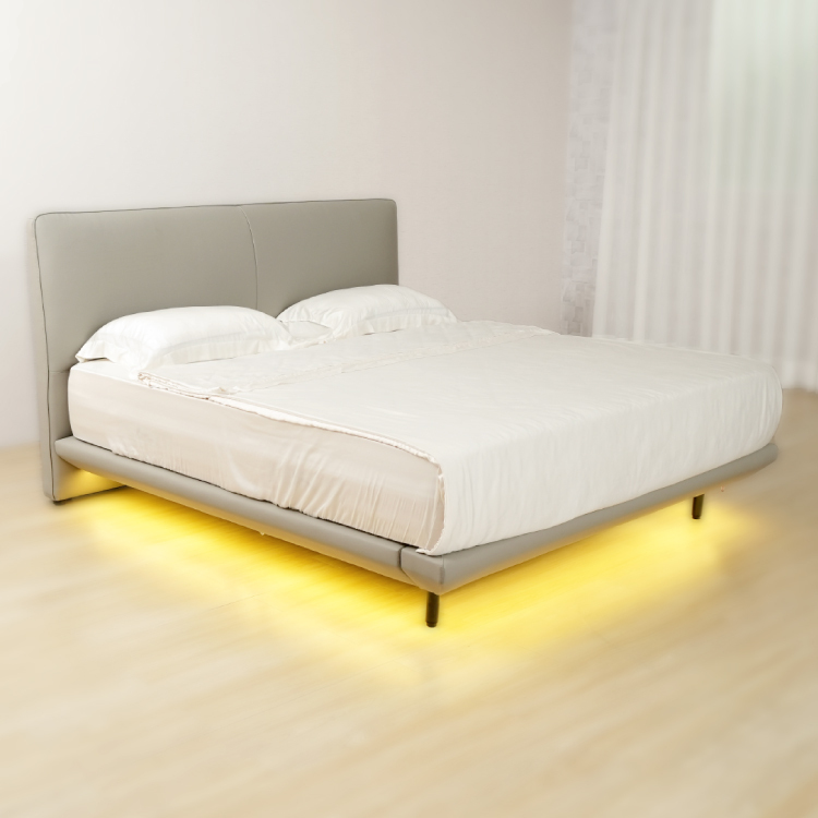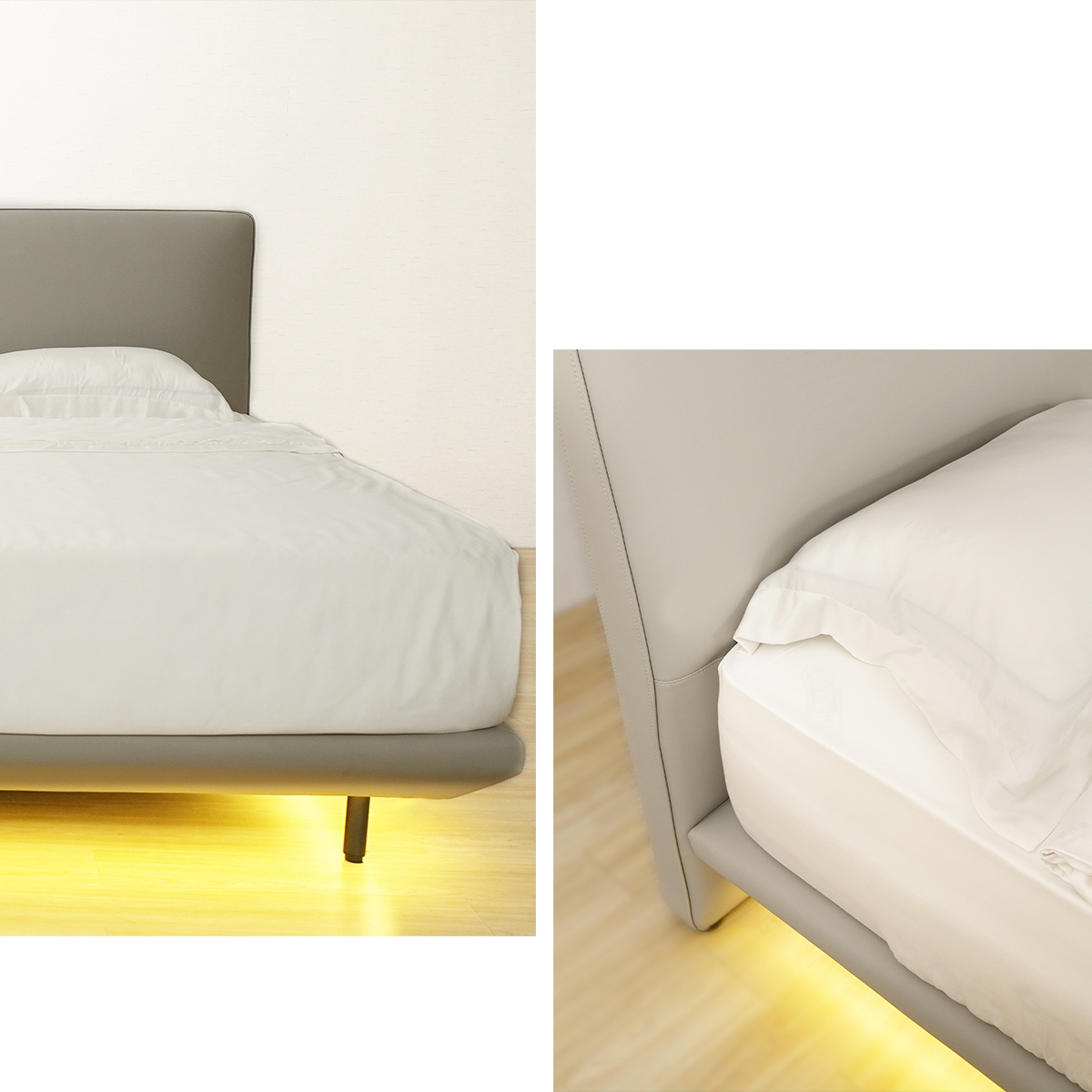 這款床的薄床架和床頭板帶來極簡的輕盈感