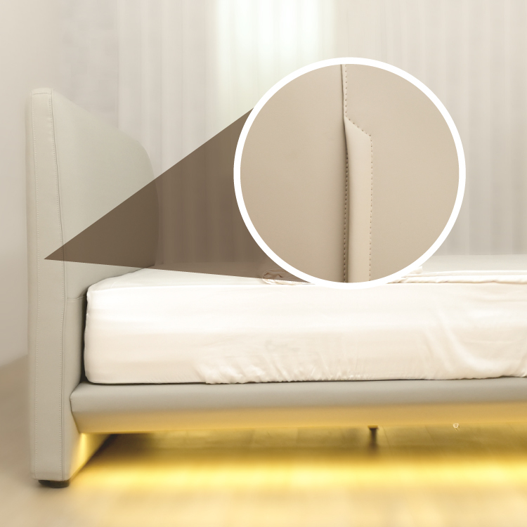 床架上的奢享細節質感包括精緻的裁縫裝飾元素和考究的細節處理,