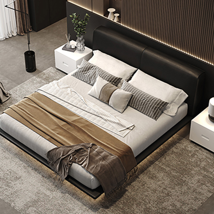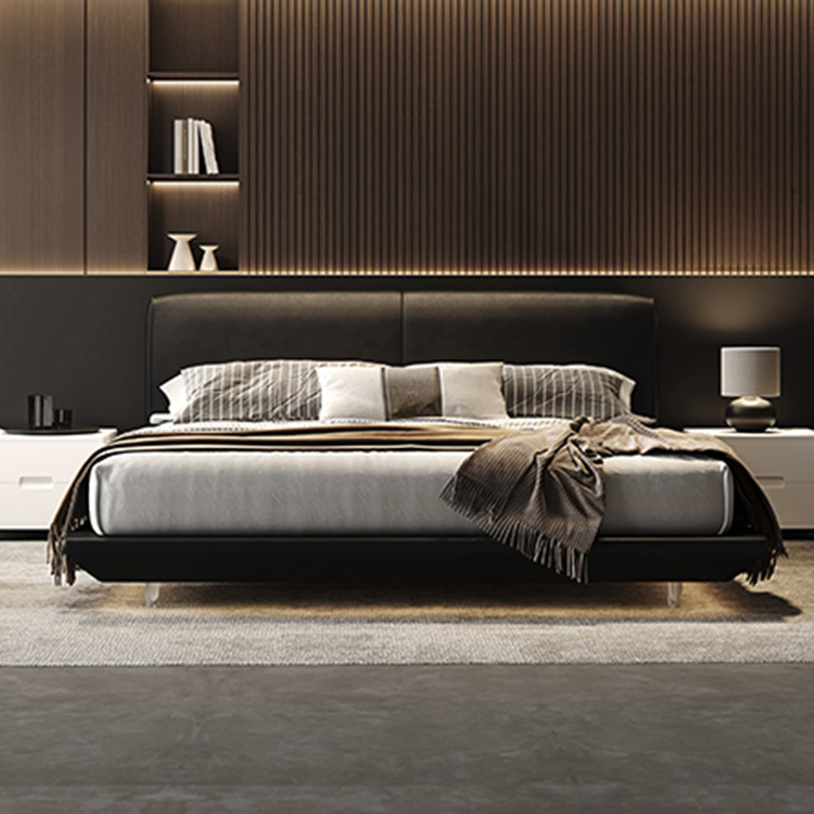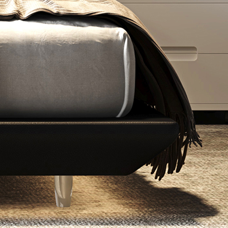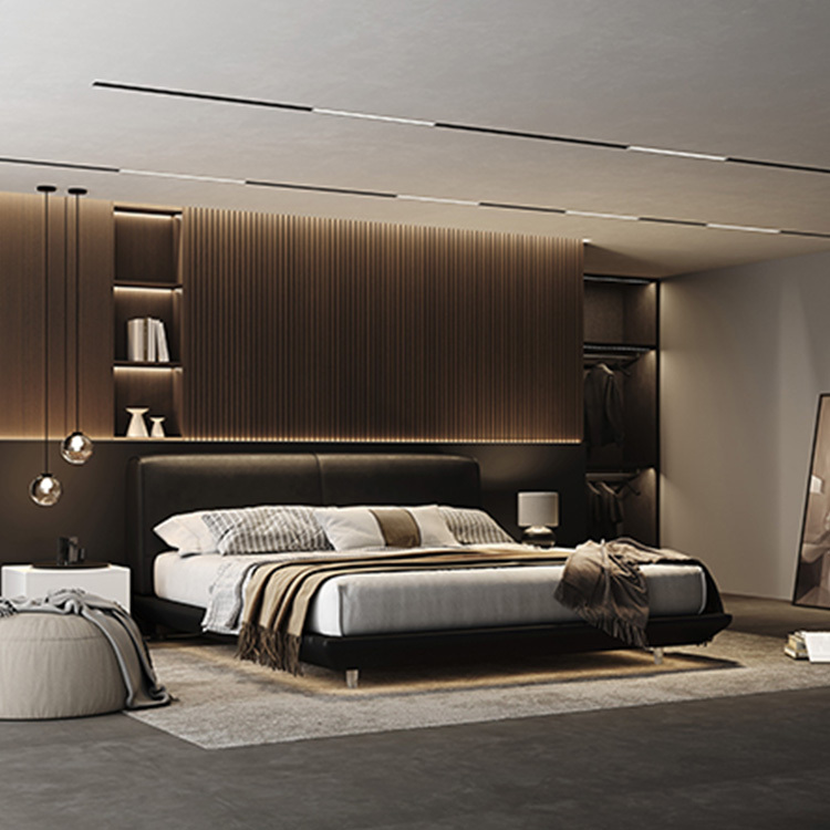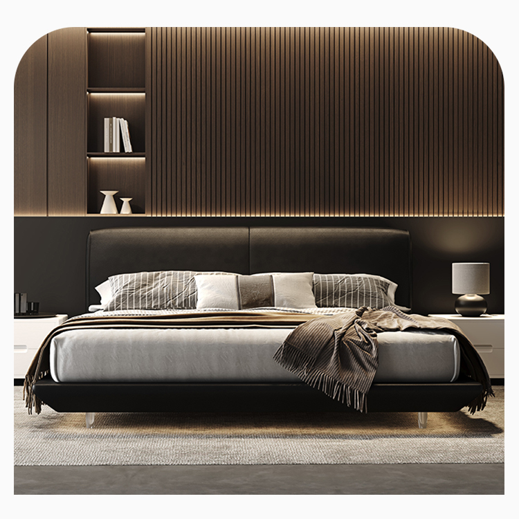 柔和的曲線床頭與高級皮革細節相呼應