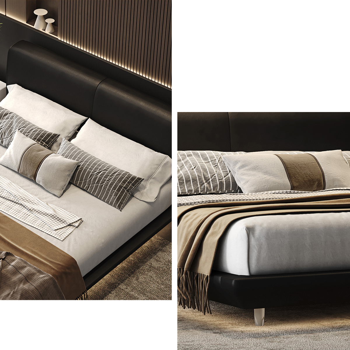 柔和的光影與細緻的床架設計相輔相成