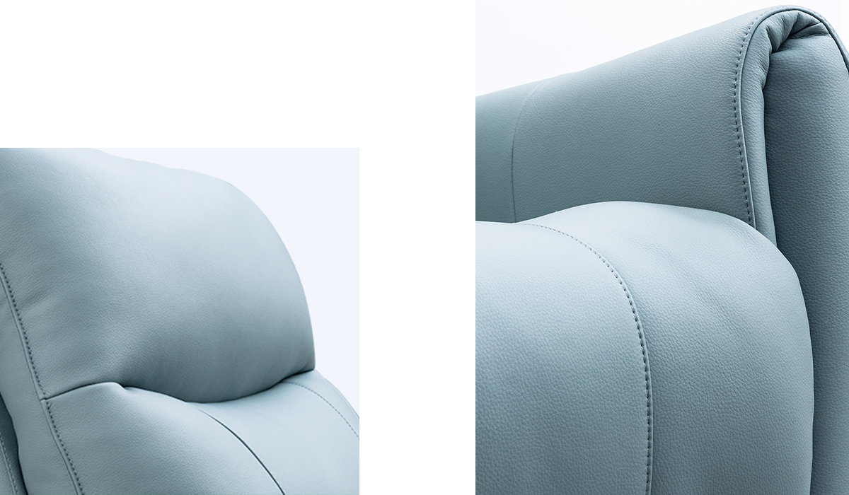 優雅的扶手流線型設計,完美融合舒適與美觀。扶手處的自然曲線讓手臂可以輕鬆垂放,帶來極佳的放鬆感受。精緻的裁縫細節更展現出高品質的手工工藝