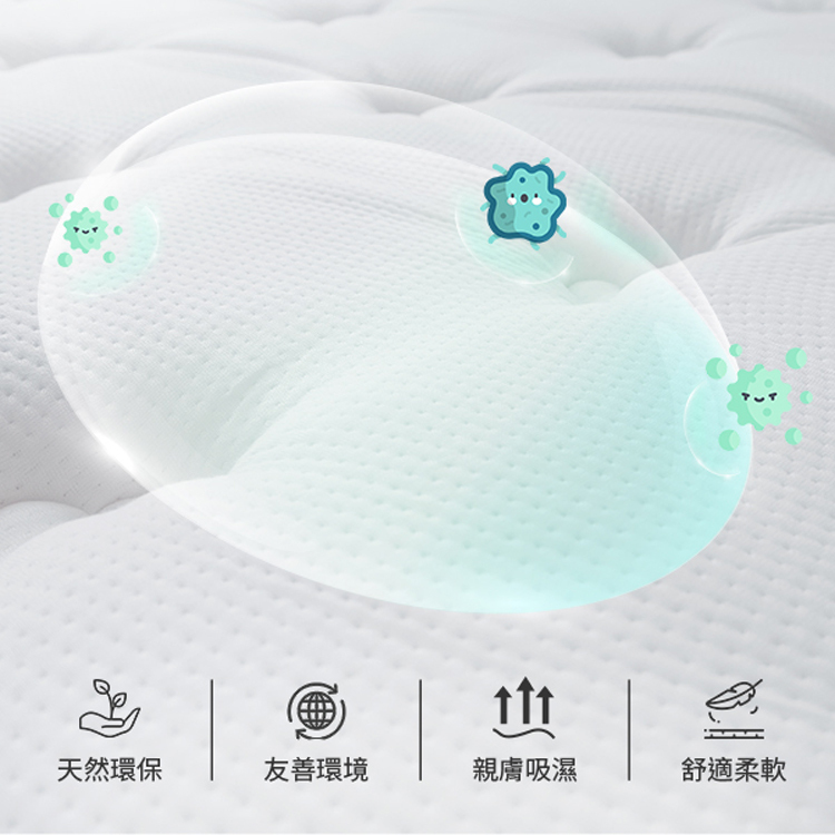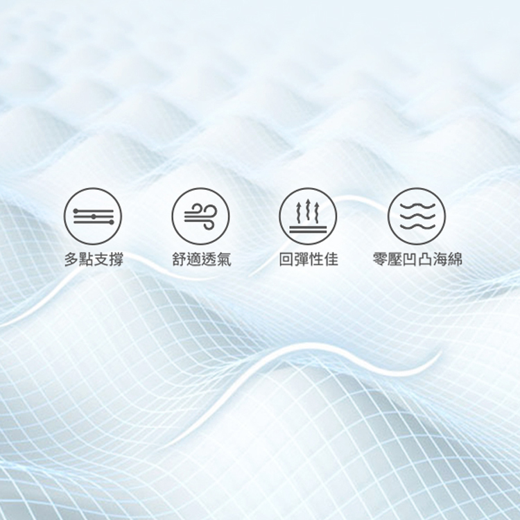 全面性的釋放身體壓力,透氣吸濕性極佳,帶來0 °零壓力的深度睡眠
