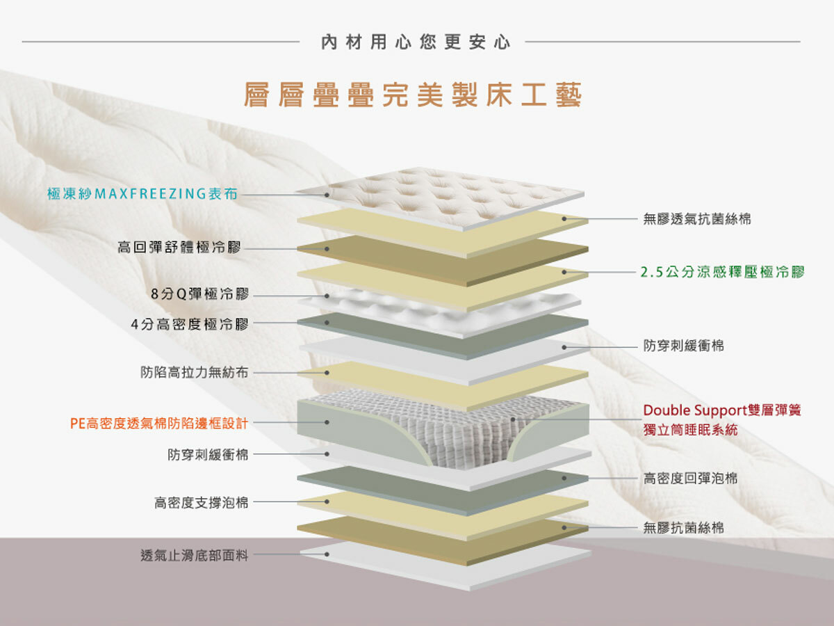 ✢翻身零干擾的獨家Double Support雙層獨立筒彈簧