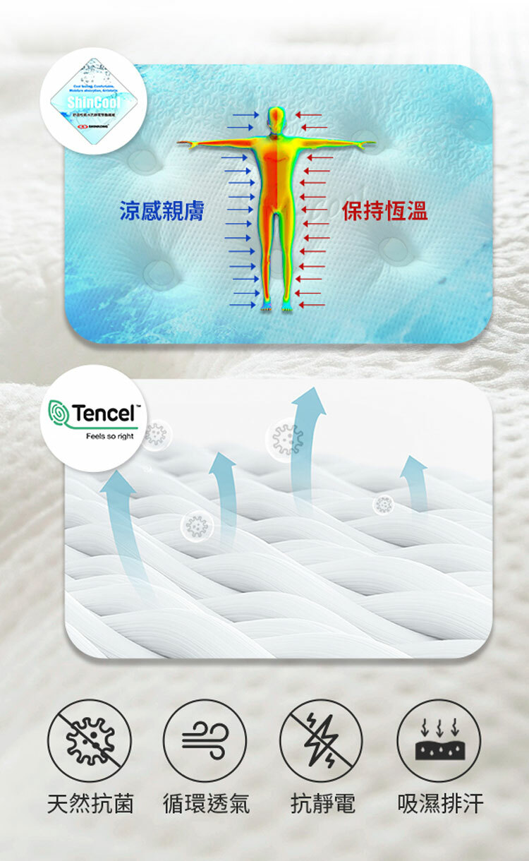 專利SHINCOOL® 涼感面料,同時具備涼感與吸濕