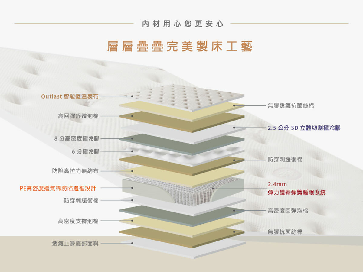 床框四邊為無鋼圈PE高密度透氣棉加強護框