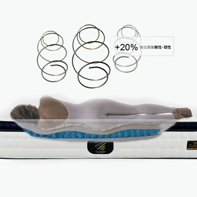 更透氣Q彈,在獨立筒彈簧加強撐托脊椎時,給予貼合身體曲線的全方位舒睡