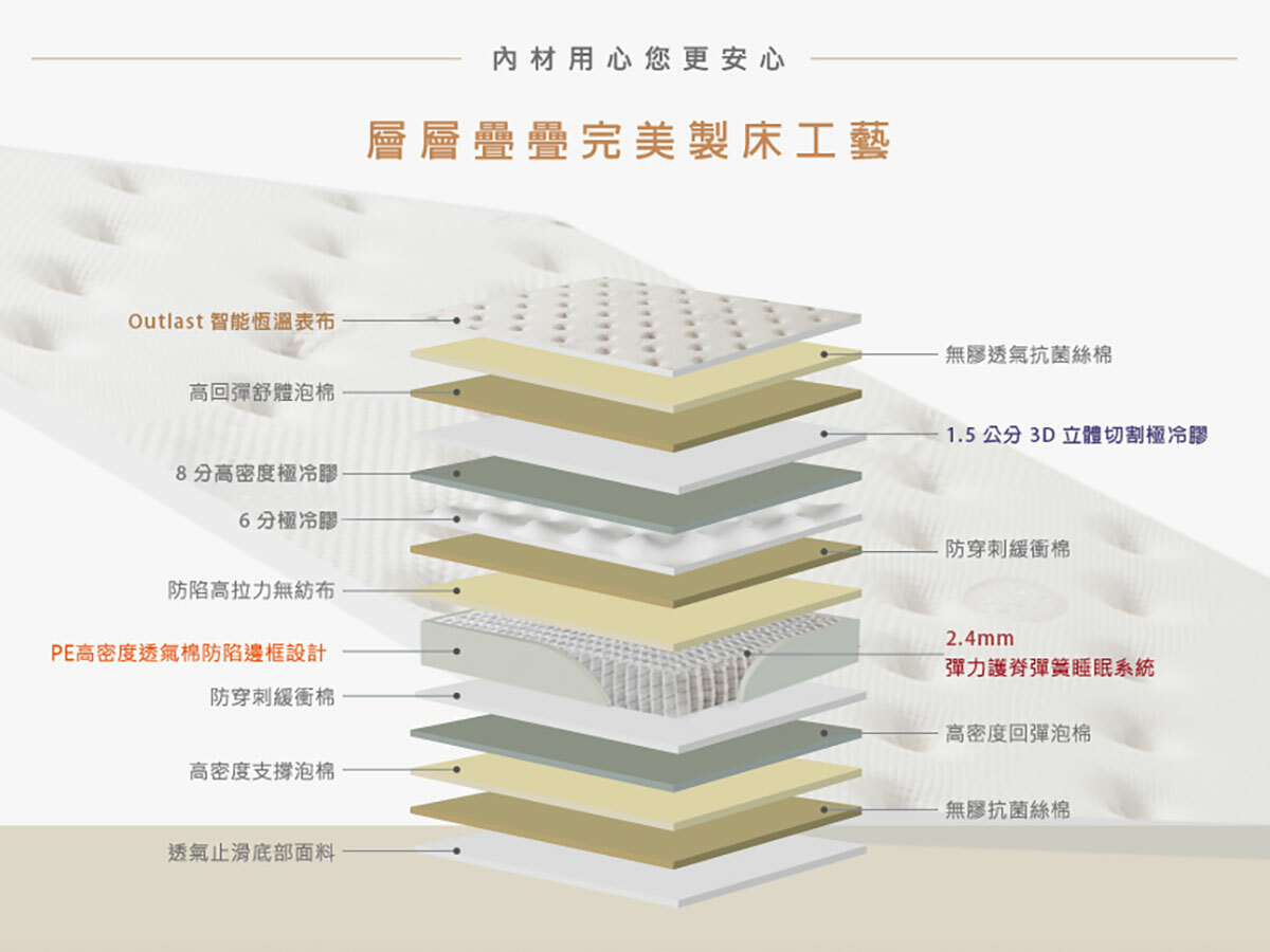 床框四邊為無鋼圈PE高密度透氣棉加強護框