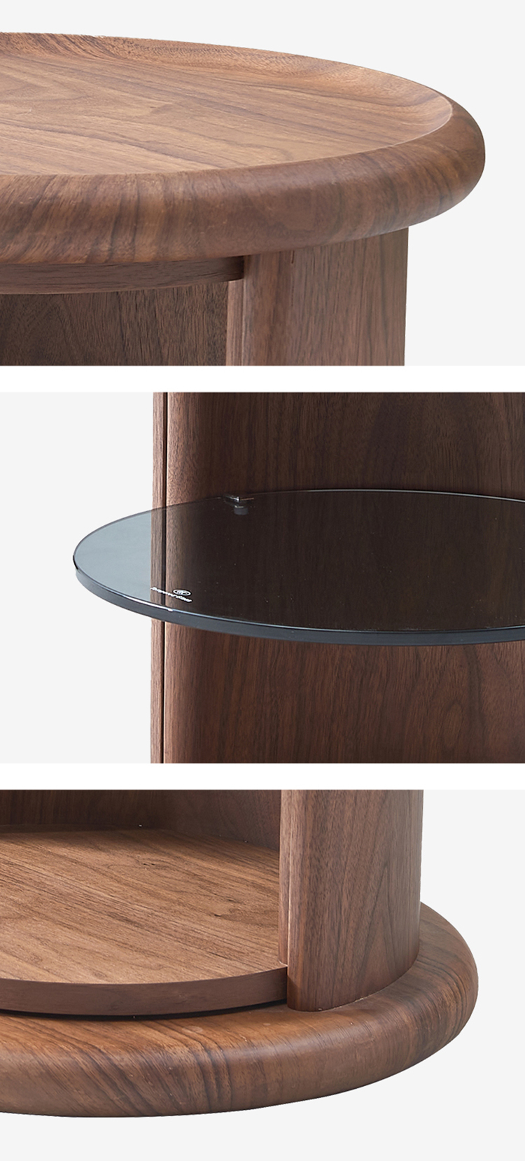 ✢胡桃色木框溫潤紋理×厚玻璃隔層,呈現優雅對比美感