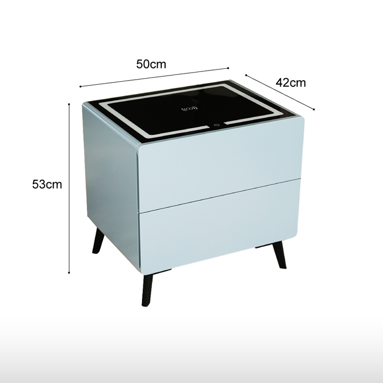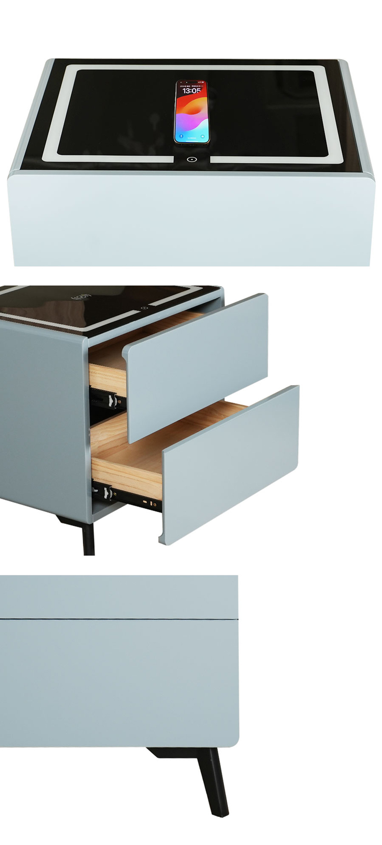 簡約現代風格,輕奢多功能的智能床頭櫃,擁有兩抽設計,提供無線充電,並具有三色調節燈功能,為臥室注入時尚與便利。