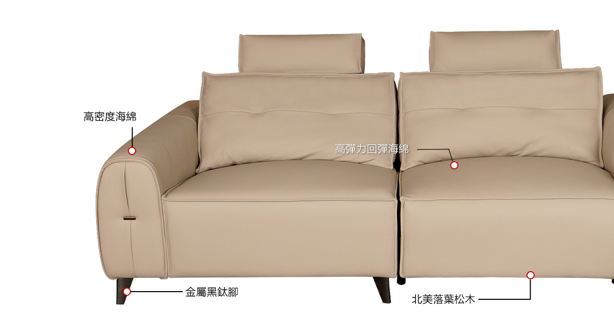 寬大坐深比例與舒適的坐感,可任一多種坐姿,將舒適和時尚融入,享受每一刻的時光