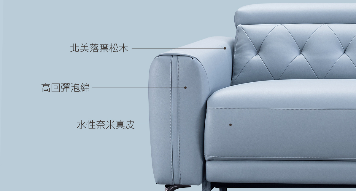 水性奈米真皮擁有真皮的觸感,細膩整齊的紋路,耐磨、耐刮、極強的防水材質,不含甲醛等有害成分,確保居家健康安全。透過創新技術,水性奈米真皮不僅延長皮革的使用壽命,更能滿足喜愛真皮觸感的消費者需求。尤其適合家中有養寵物的朋友或是有學齡前的孩童,這種材質的家具商品在耐用性、觸感舒適度以及環保特性方面都表現卓越。水性真皮/牛皮無疑是未來家具市場中的新時尚,提供一個健康、環保且高品質的選擇。