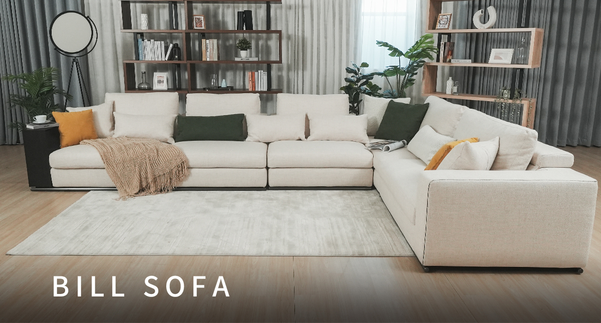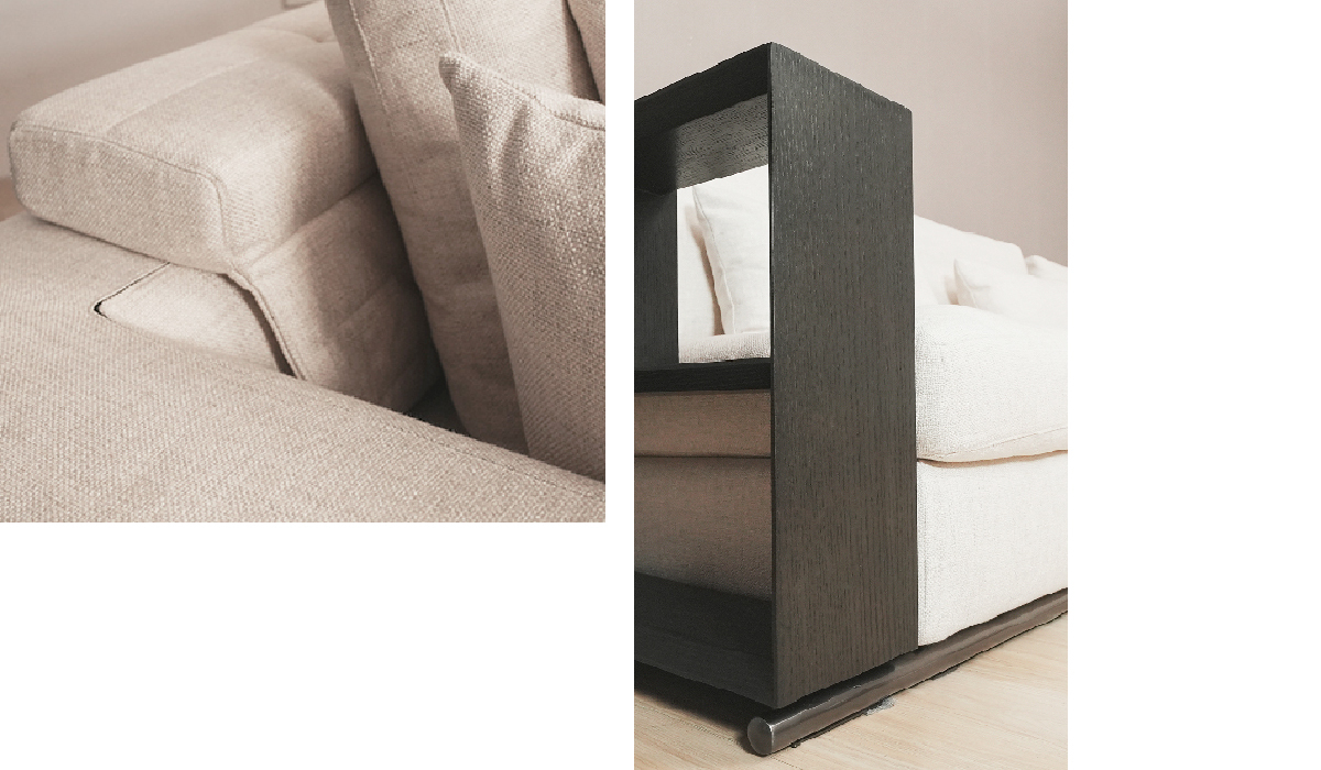 比爾沙發以米白色主調搭配木扶手與布藝結合,呈現義式風格的優雅與簡約,打破傳統設計,展現現代大氣美學