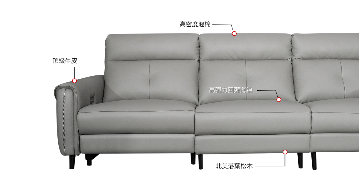 配備無段靜音電動調節系統,輕鬆通過按鈕來調整沙發的傾斜角度和座位高度的多角度調節