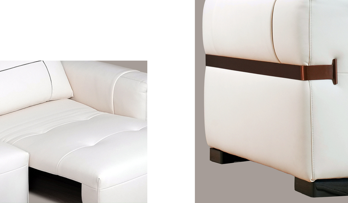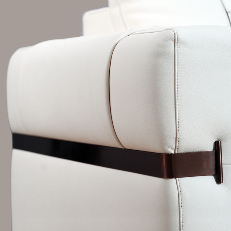 扶手中段採用紅銅金屬飾條,新穎俐落的微反射線條,搭配多層次反摺車線,時尚設計與精湛工藝,展現個性品味,帶出輕奢高雅的氛圍