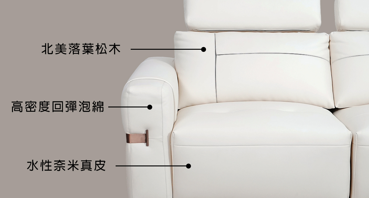 水性奈米真皮擁有真皮的觸感,細膩整齊的紋路,耐磨、耐刮、極強的防水材質,不含甲醛等有害成分,確保居家健康安全。透過創新技術,水性奈米真皮不僅延長皮革的使用壽命,更能滿足喜愛真皮觸感的消費者需求。尤其適合家中有養寵物的朋友或是有學齡前的孩童,這種材質的家具商品在耐用性、觸感舒適度以及環保特性方面都表現卓越。水性真皮/牛皮無疑是未來家具市場中的新時尚,提供一個健康、環保且高品質的選擇。