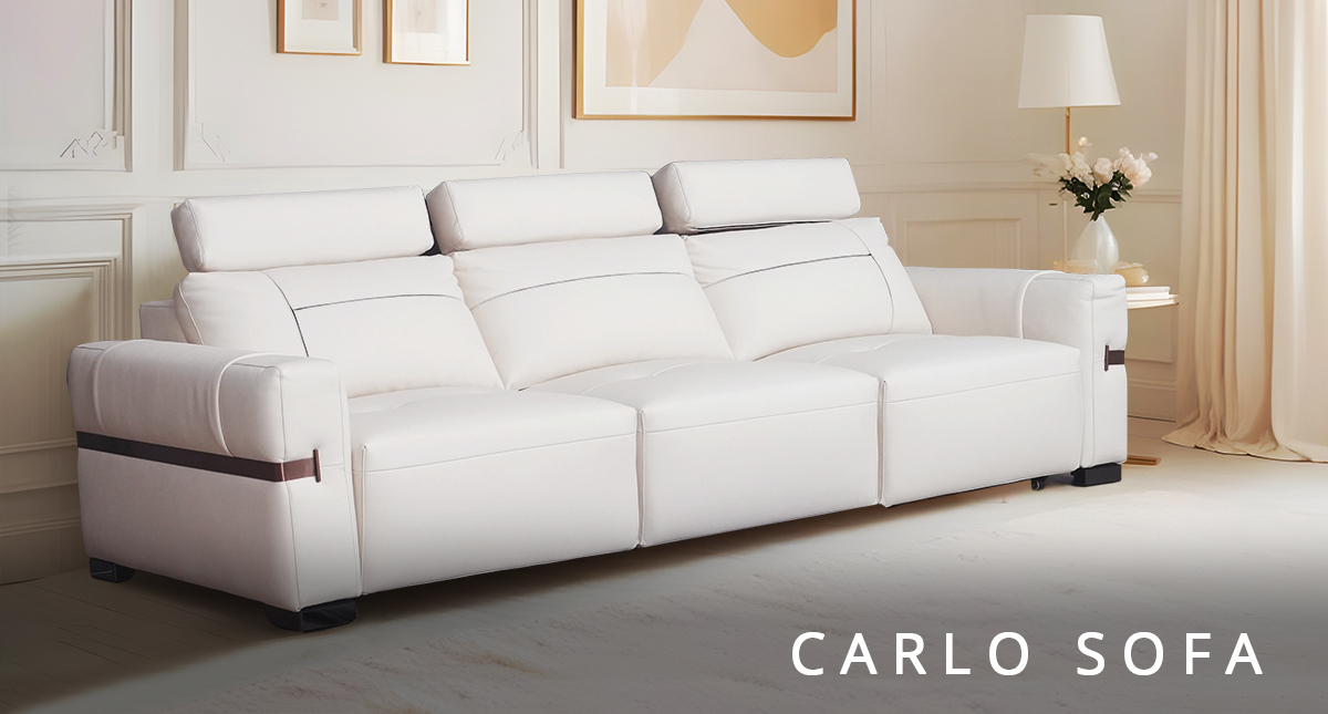 Carlo電動沙發使用時尚簡約的線條搭配十足的厚實感,細節的精湛工藝,穩重大氣中又增添華麗質感