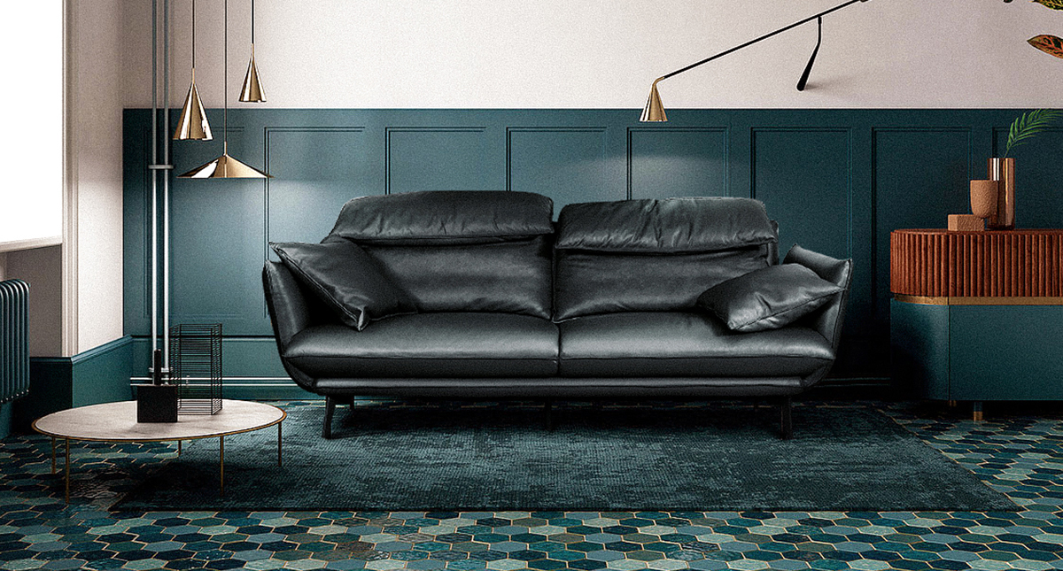 Javier Sofa是一張舒適的高靠背沙發,皮革與整體設計展現非常出色的細節