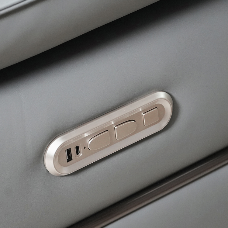 扶手側邊設有USB雙插口設計,隨插即用,即時充電