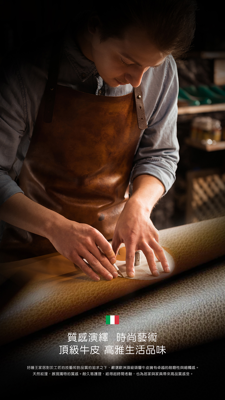展現著義式工藝的傑作,特別注重縫線的細緻設計,每一道縫線都經過工匠細心裁剪