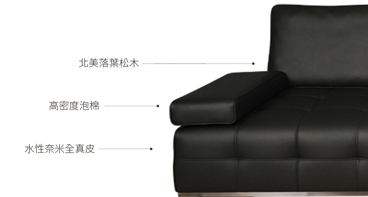 其底座不鏽鋼底架延伸整體沙發視覺,精緻的工藝使得整體沙發更加氣派