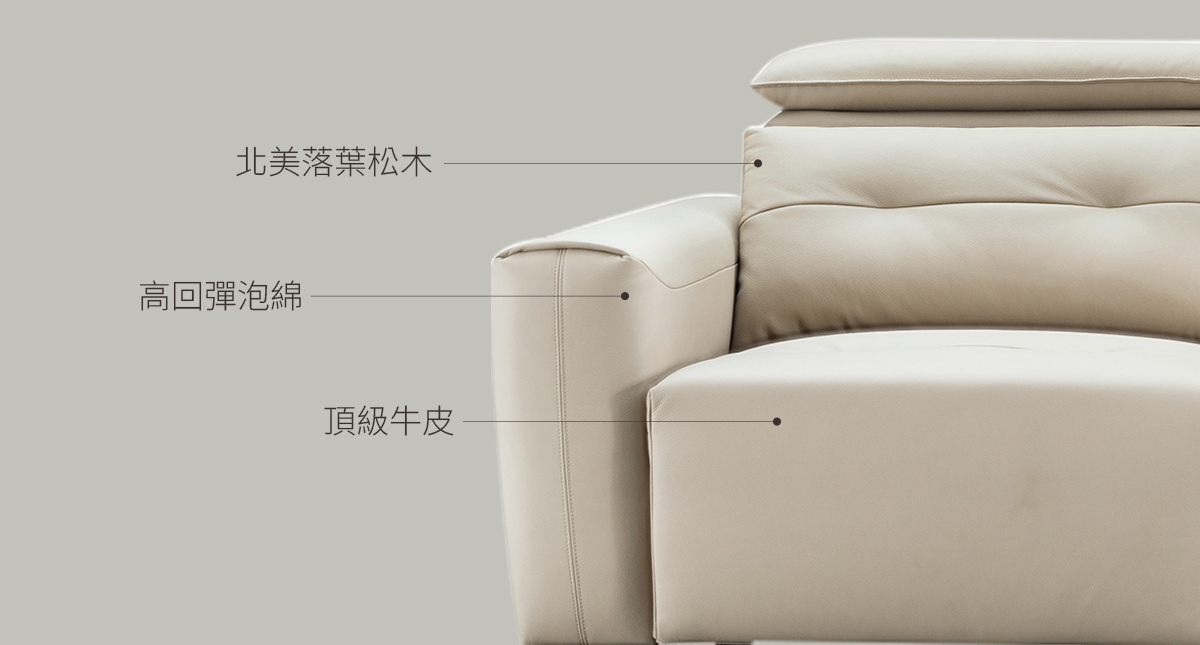 獨特的設計有別於傳統沙發,每個座位都可單獨電動調整,隨心所欲地選擇最舒適的姿勢