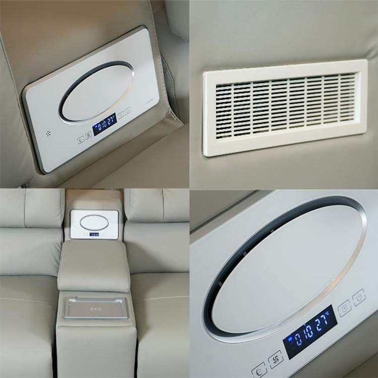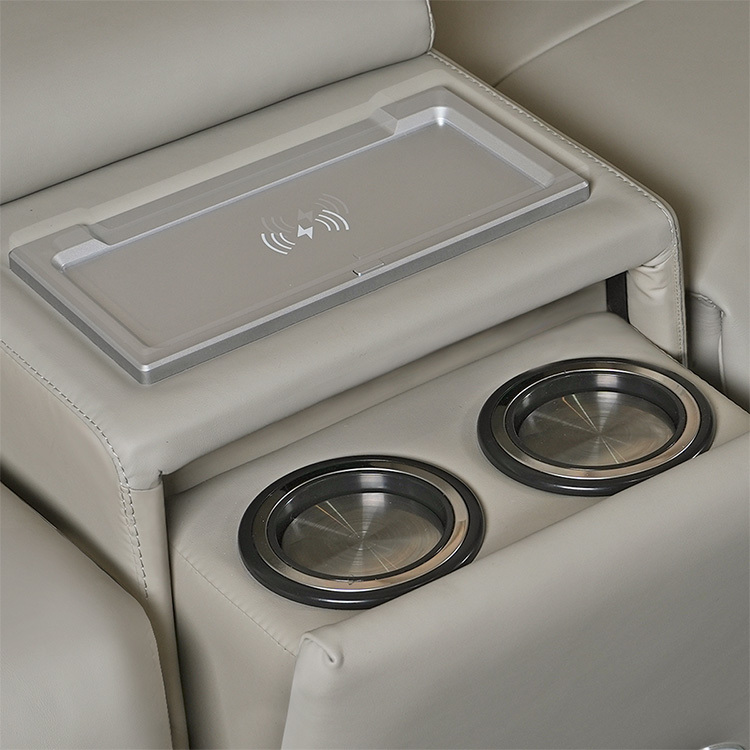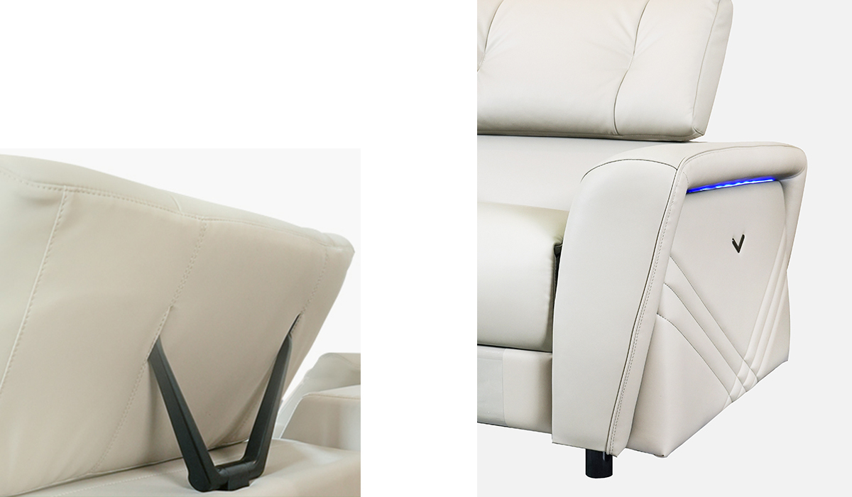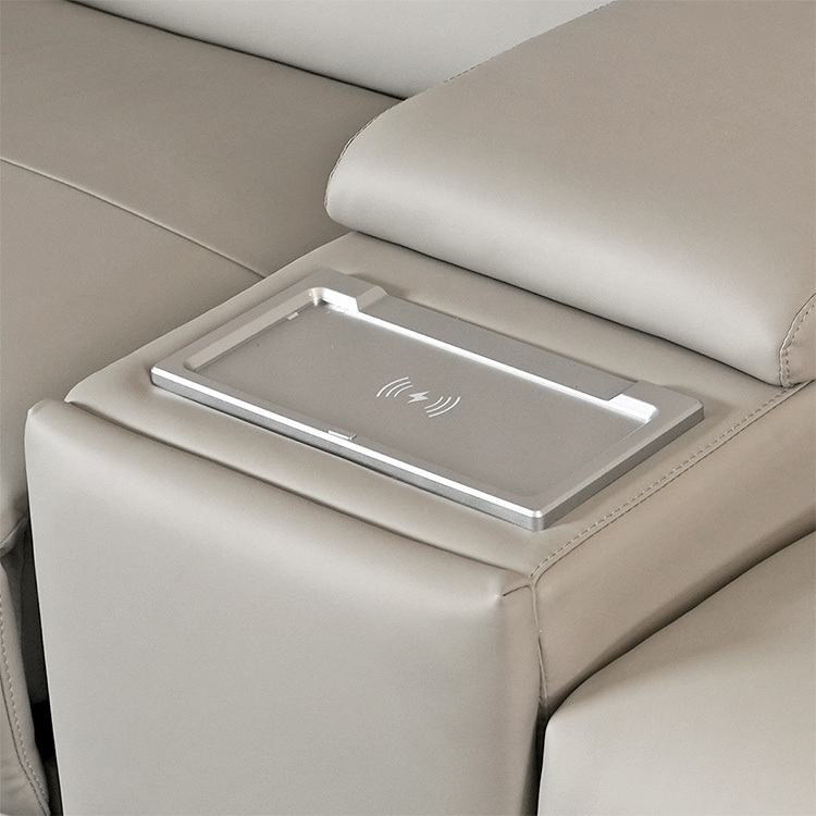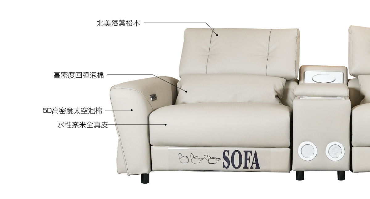 茶几功能包含檯燈、無線充電盤、空氣淨化器&藍芽音箱等全方位多功能設備均可以依個人需求客製,打造屬於自己的智能沙發,擁有豪華影廳的居家體驗!