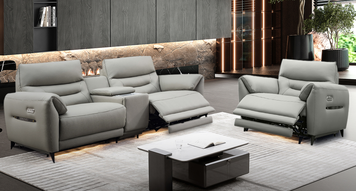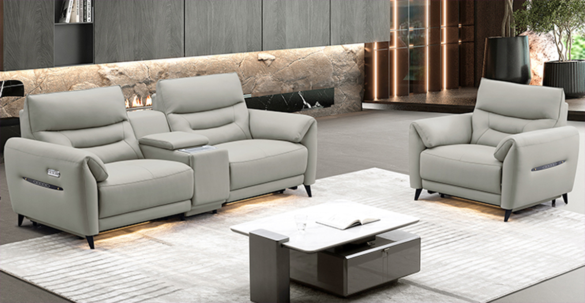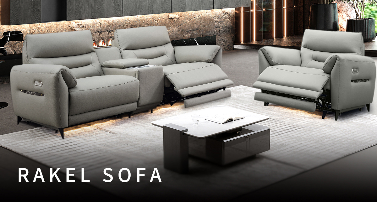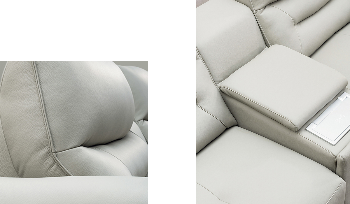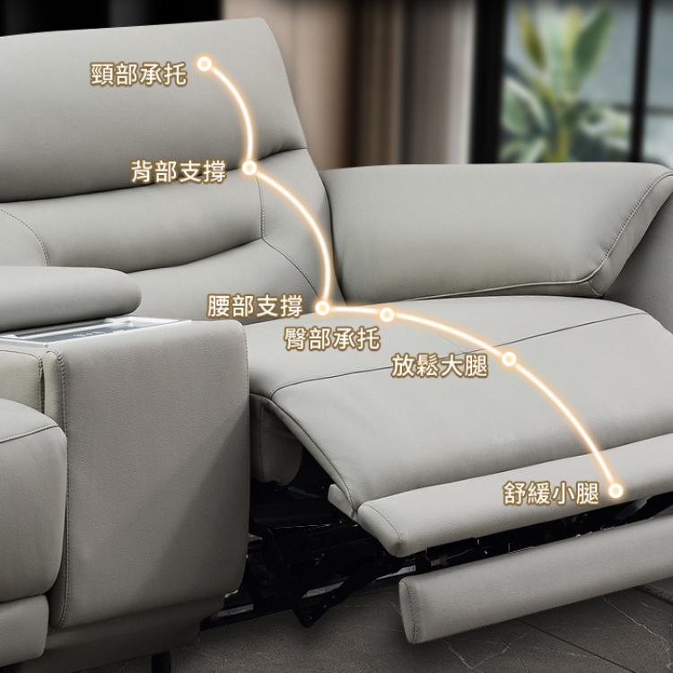 蘿凱電動沙發以柔和大方的線條設計,配有舒適的獨立靠背和腰部支撐,展現現代舒適的外觀