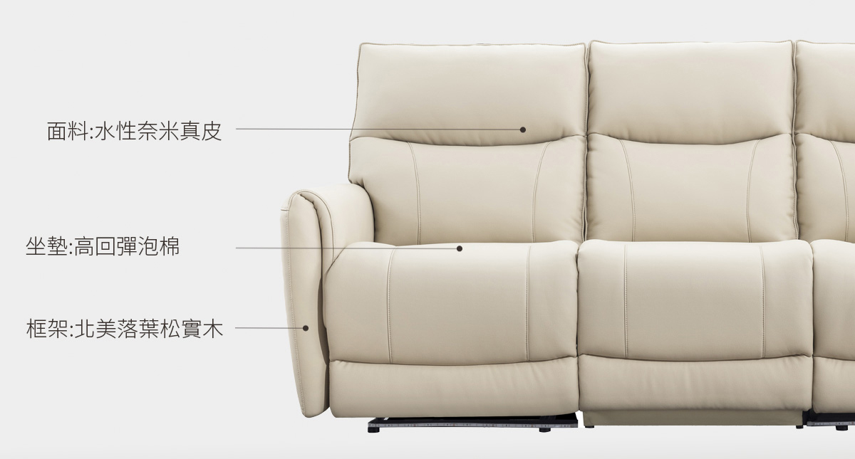 水性奈米真皮擁有真皮的觸感,細膩整齊的紋路,耐磨、耐刮、極強的防水材質,不含甲醛等有害成分,確保居家健康安全。透過創新技術,水性奈米真皮不僅延長皮革的使用壽命,更能滿足喜愛真皮觸感的消費者需求。尤其適合家中有養寵物的朋友或是有學齡前的孩童,這種材質的家具商品在耐用性、觸感舒適度以及環保特性方面都表現卓越。水性真皮/牛皮無疑是未來家具市場中的新時尚,提供一個健康、環保且高品質的選擇。