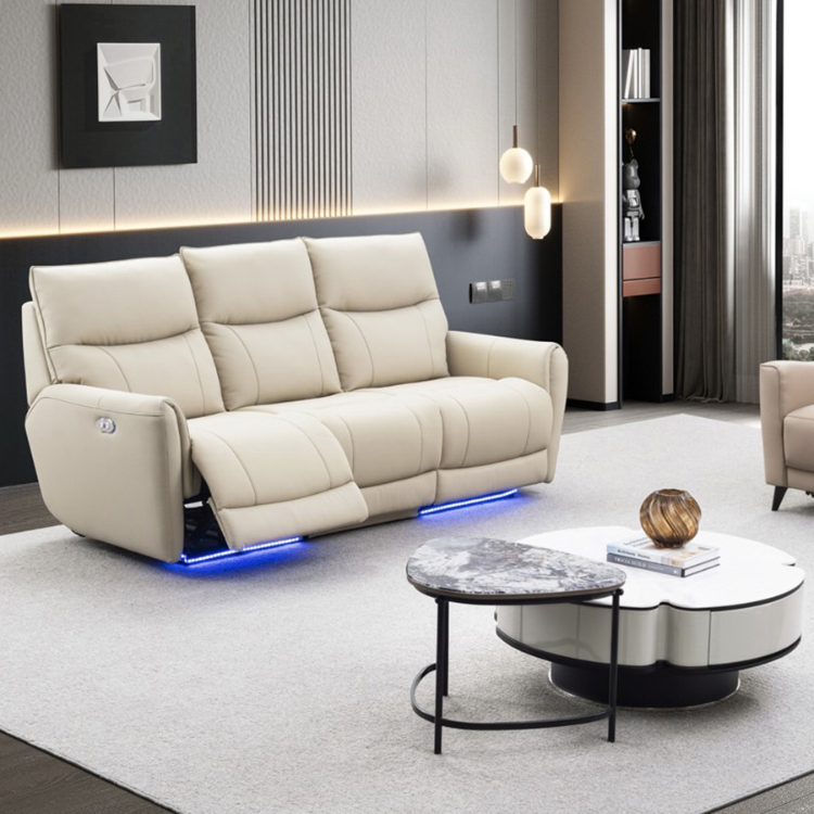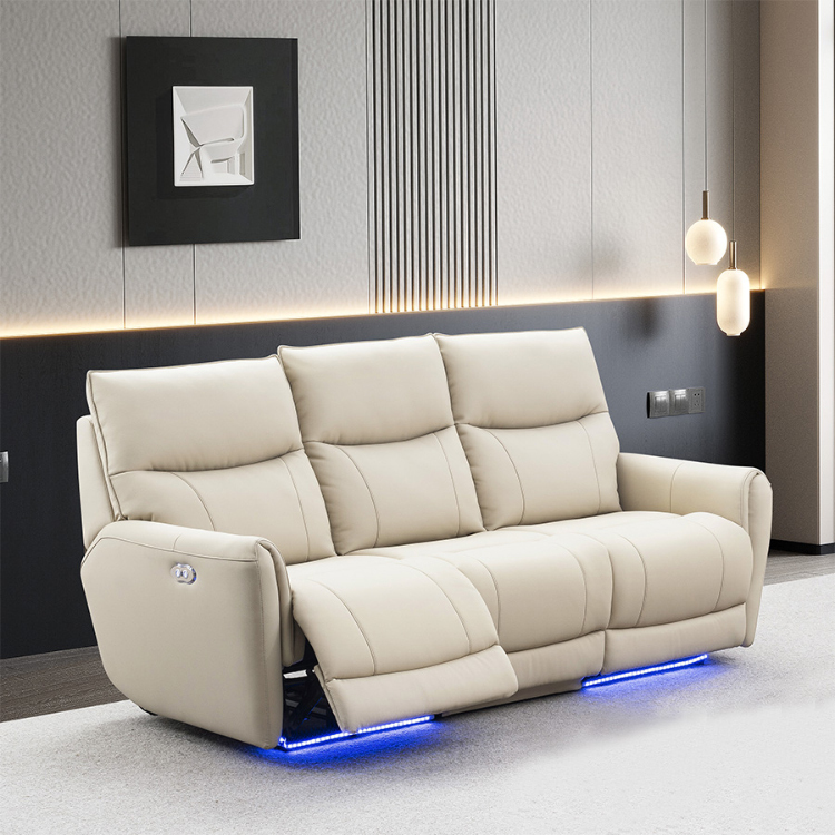 科技與美學的完美共鳴,底部精巧嵌入科技燈帶,描繪出獨特的光影層次,不僅營造出溫馨的氛圍,更突顯出沙發的現代感與獨特品味